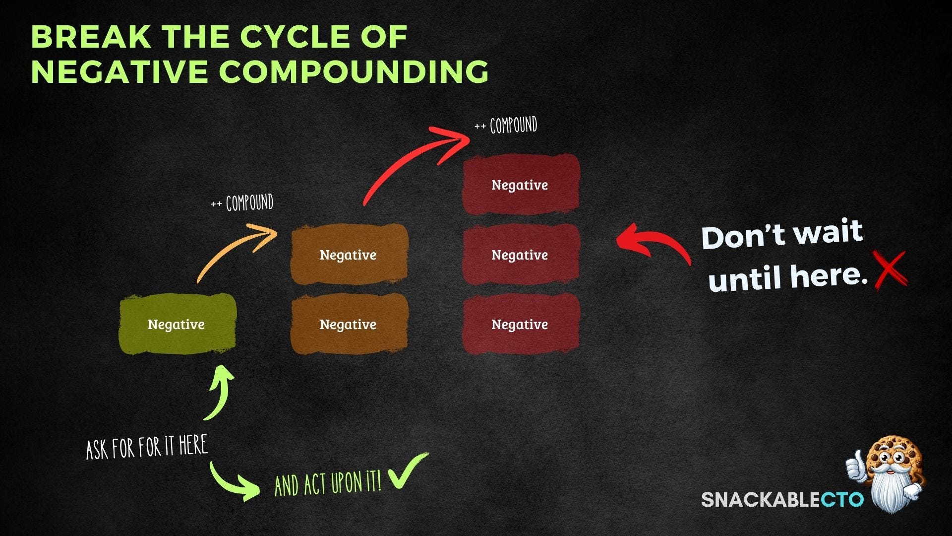 This image illustrates how a seemingly small negative situation can grow exponentially if left unaddressed. Each layer of unchecked negativity compounds the problem, culminating in a more significant setback that is much harder to resolve. The message is clear: don’t wait until issues have escalated beyond your control. Instead, invite open dialogue and address concerns early to stay proactive and solution-oriented. By embracing continuous communication—primarily through honest and constructive exchanges—you can transform potential problems into opportunities for growth.